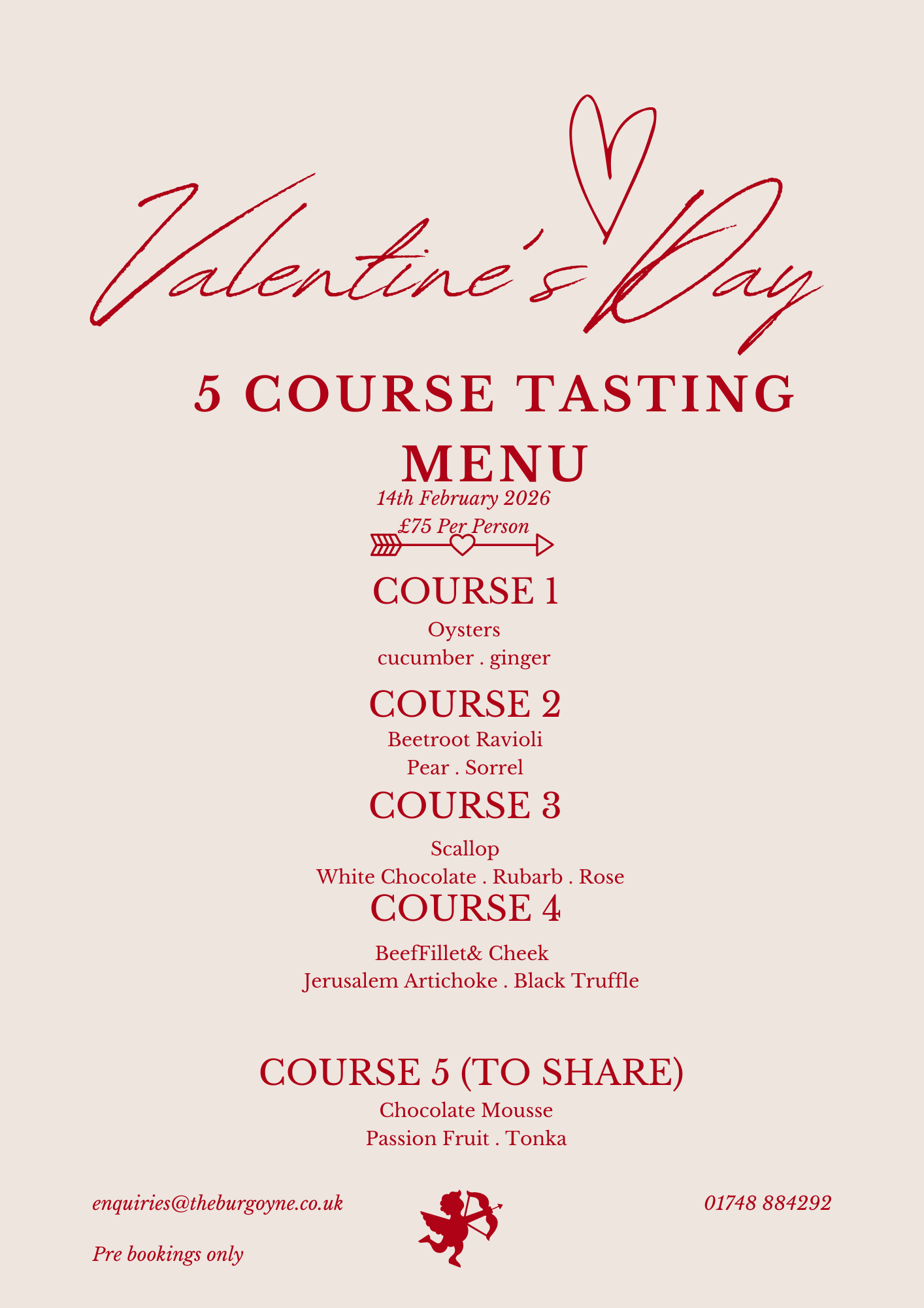 Email: enquiries@theburgoyne.co.uk or by phone: 01748 884292